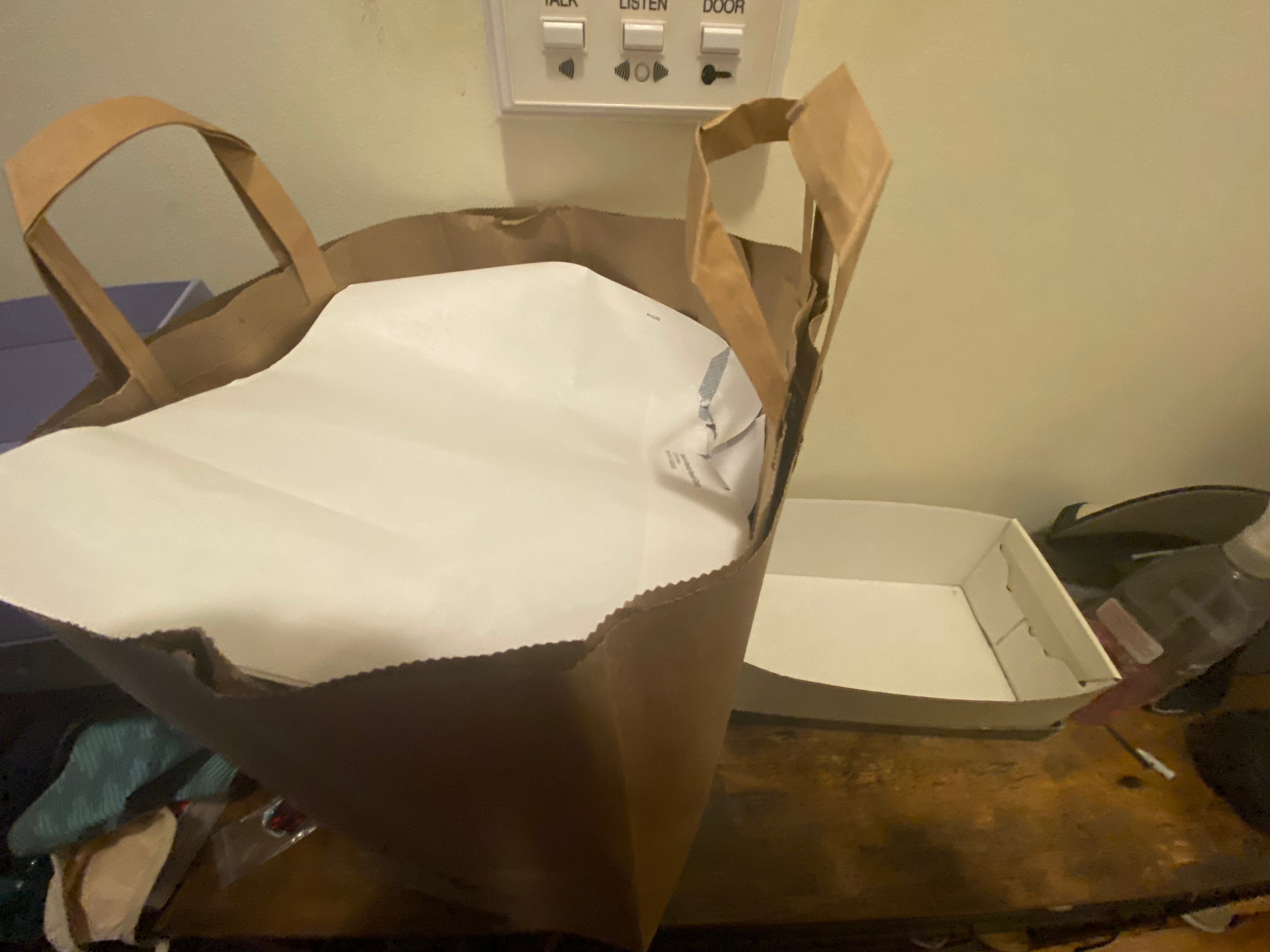 I forgot to take a “before” picture, but it was full up to bustin’, multi-leveled, and had flying buttresses to hold all the post at bay. It was a fright. Here is the almost full grocery bag of recyclable mail that was in this box: